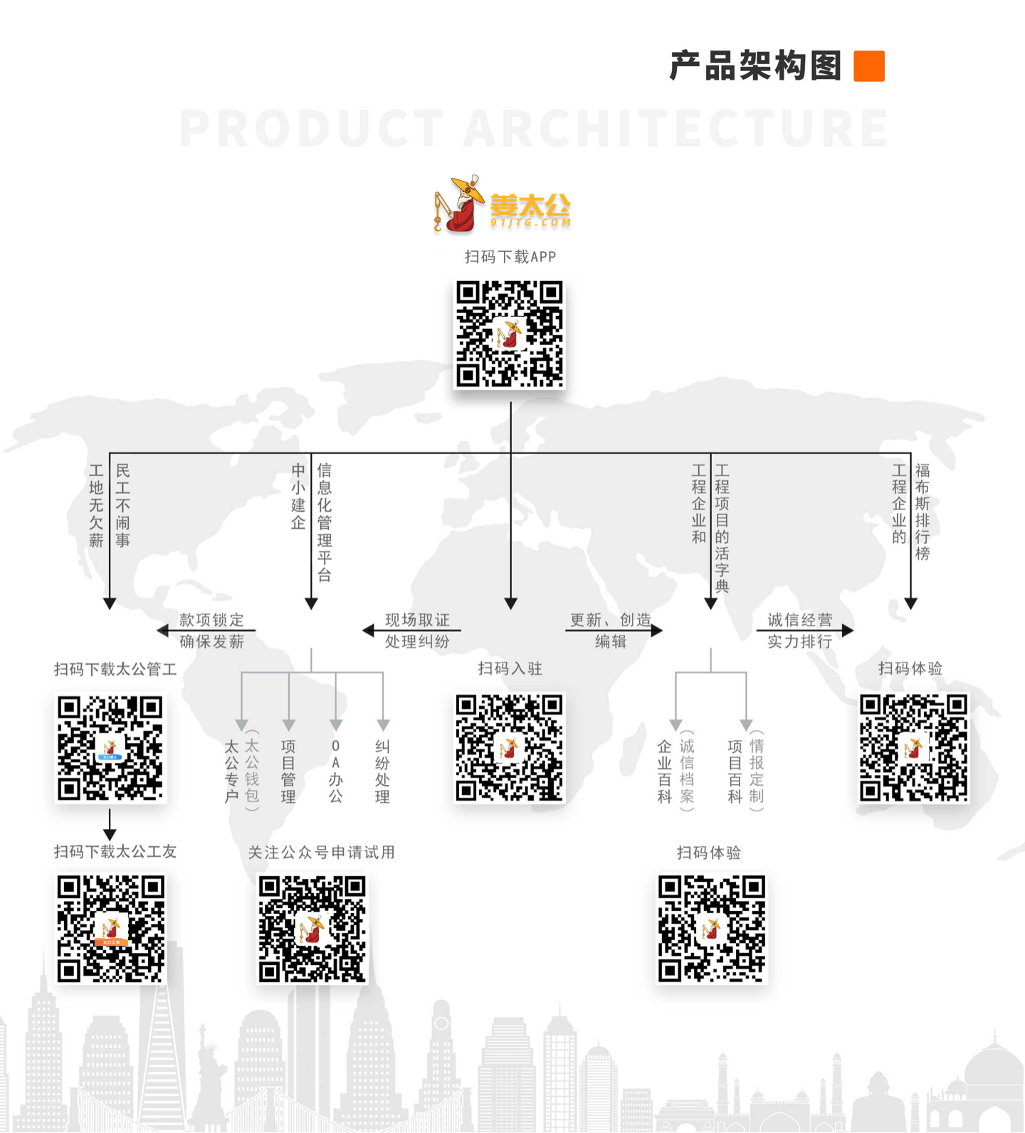 作为工程界的信息聚合市场和应用产品入口,姜太公网的唯一目标,就是做成工程行业都知道、都在用、都说好的标准型一站式互联网云服务平台。